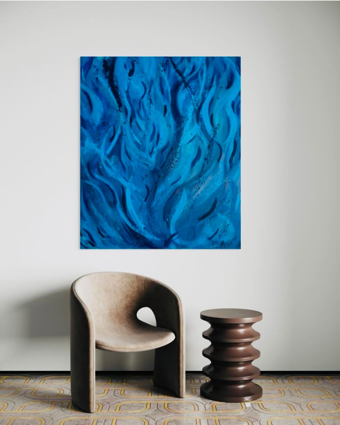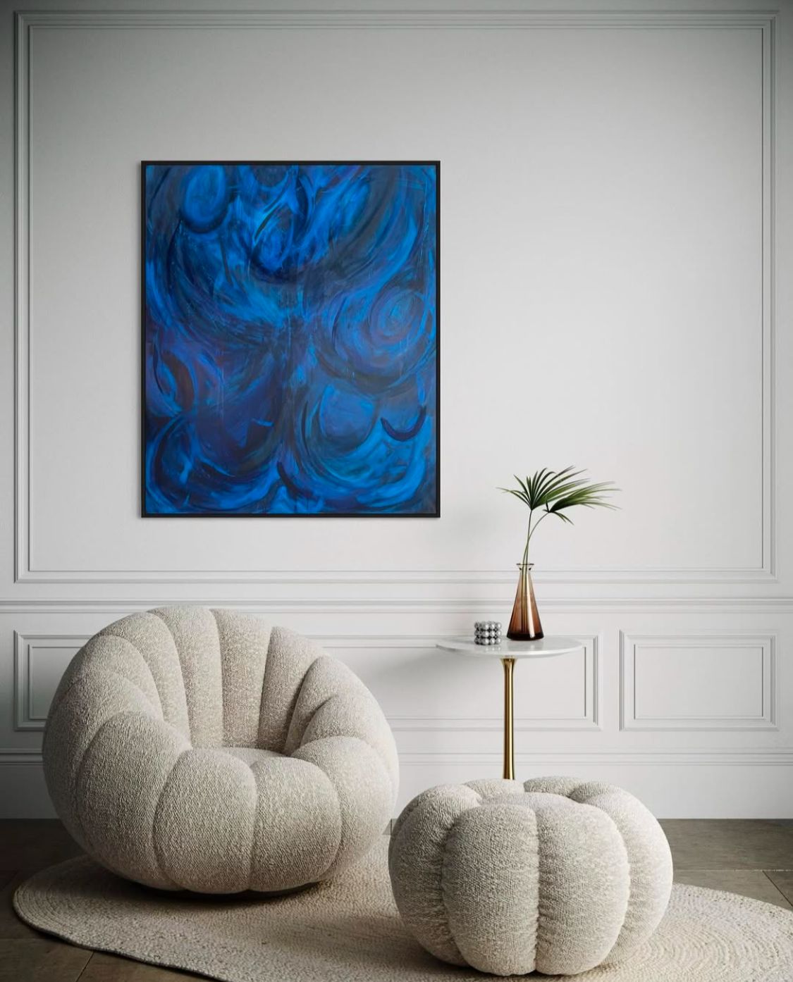 Sarah Curtenaz is a French artist and entrepreneur. She defines herself as an "avant-gardist creator" and explores various forms of art. Photography is also part of her journey. She doesn't adhere to a single style; instead, her approach is free and ever-changing, much like her and life itself. Since her arrival in Tenerife in September 2023 to the end of 2024, Sarah has embraced her “blue phase,” likely influenced by the long hours she spends surfing and swimming in the ocean. This deep connection to the sea is a driving force in her creative process. She is passionate about pushing boundaries, stimulating her imagination, and challenging the norm. She paints her emotions, screams, tears, and laughter. Expressing herself through art has become a fundamental need. She loves experimenting with large formats and mixing techniques and paints, from acrylics to oils and spray. During her blue phase, Sarah Curtenaz created two collections: “NEW ERA” and “FOUR.” Both are based on blue tones, hand painting, and mixed techniques. At the beginning of 2025, color arrived. This change marks a clear evolution in her work. Her own style and movement become evident in these new, colorful paintings. The “COLORS” Collection stands as a witness to this evolution. Also in 2025, Sarah unveiled the “RE” Collection—a deeply personal project made from recycled materials, giving new life to discarded pieces. The collection is both a creative and emotional tribute to her artist friend Gaston Gil, and takes its name from the brand he created: RE—a symbol of rebirth, renewal, and respect for materials and memory. Sarah has moved away from words and feels a profound need to express herself through painting. A distinctive aspect of her practice is painting with her bare hands, even when working with oil paint. This method connects her to an ancestral memory—a knowledge from another era that feels genuine and authentic. She paints outdoors, in her studio garden, surrounded by trees, singing birds, the wind, and lizards. Most of the time, she paints in silence, barehand and barefoot, fostering a deep connection with her soul and the earth.